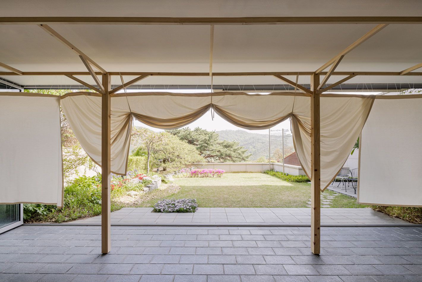 이번 전시를 준비하면서 개인적으로 가장 마음에 두었던 것은 비극과 슬픔이 한 몸이고 누군가를 추모하는 이 공간이 역설적으로 매우 따뜻하고 신체적이었으면 좋겠다는 생각이었습니다. 민화를 유심히 들여다보면 잔치나 큰 일을 치룰 때 과거의 전통 속에서도 장막을 치고 행사를 치르는 그림을 발견하곤 합니다. 이를 현대적인 방식으로 구조를 만들고 장막을 치고, 더불어 장막으로 공간을 세분화하고 동선을 길게 만들어서, 매우 살갑게 닿는 듯한 신체적인 관점에서의 따뜻한 공간을 만들면 어떨까 하는 것이었습니다. 편백나무로 공간안에 집을 짓듯이 건축을 하고 여기에 광목을 실로 꿰매서 매달려 있는 구조로 공간을 만들었습니다. 장막을 들어 올려서 술로 묶으면 개구부가 되고 예측할 수 없는 동선을 따라가다 보면 어느 사이에 추모의 공간으로 들어서게 됩니다. 가능하다면 이어령 선생님에 대한 추모와 더불어 누구도 피할 수 없는 죽음에 대한 생각을 해보는 계기가 되었으면 좋겠습니다. 죽음을 매우 따뜻하고 신체적으로 생각해보는 경험이 가능하다면 이 또한 이어령 선생님과 생전에 나누었던 전시의 이야기에 합당한 것이라 생각하였습니다. 한 땀 한 땀 실로 천막을 꿰어 메면서 누군가를 위한 정성스러운 마음이 무엇인지 다시 한번 생각하게 되었습니다. 개인적으로는 매우 특별한 경험을 선물 받은 프로젝트입니다.